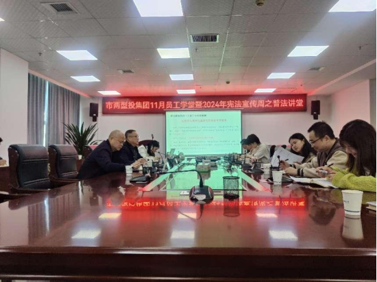 •   為進(jìn)一步加大普法宣傳教育力度,弘揚(yáng)憲法精神,加深全體員工法治觀念。11月27日,市兩型投集團(tuán)開(kāi)展了本年度第11期員工學(xué)堂暨普法宣傳專題講座,由集團(tuán)公司黨委委員、副總經(jīng)理?xiàng)钗奈渲鞒,邀?qǐng)湖南天聲律師事務(wù)所李科主任主講。