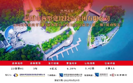 • 益陽市兩型建設投資集團有限公司成功發(fā)行“2023年面向專業(yè)投資者非公開發(fā)行公司債券(第一期)”