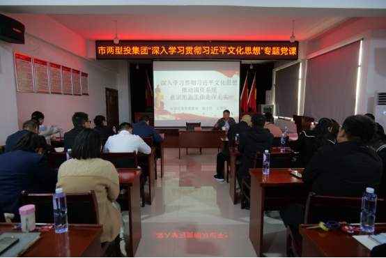 •   11月29日,市兩型投集團(tuán)公司邀請市國資委黨委委員、副主任文明濤以“深入學(xué)習(xí)貫徹習(xí)近平文化思想、推動國資系統(tǒng)意識形態(tài)工作走深走實(shí)”為主題,為公司干職工上了一堂生動的黨課。