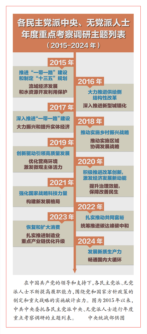 八是明確更好體現(xiàn)中國新型政黨制度效能的著力點是發(fā)揮好民主黨派和無黨派人士的積極作用。習近平總書記著眼以中國式現(xiàn)代化全面推進強國建設(shè)、民族復興偉業(yè),強調(diào)希望各民主黨派把多黨合作所長與中心大局所需結(jié)合起來,在參政議政中聚眾智,在民主監(jiān)督中建諍言,在政黨協(xié)商中獻良策;強調(diào)用好政黨協(xié)商這個民主形式和制度渠道,有事多商量、有事好商量、有事會商量,通過協(xié)商凝聚共識、凝聚智慧、凝聚力量。這些重要論述,明確了各民主黨派和無黨派人士發(fā)揮作用的著力點,為更好體現(xiàn)中國新型政黨制度效能指明了實踐路徑。