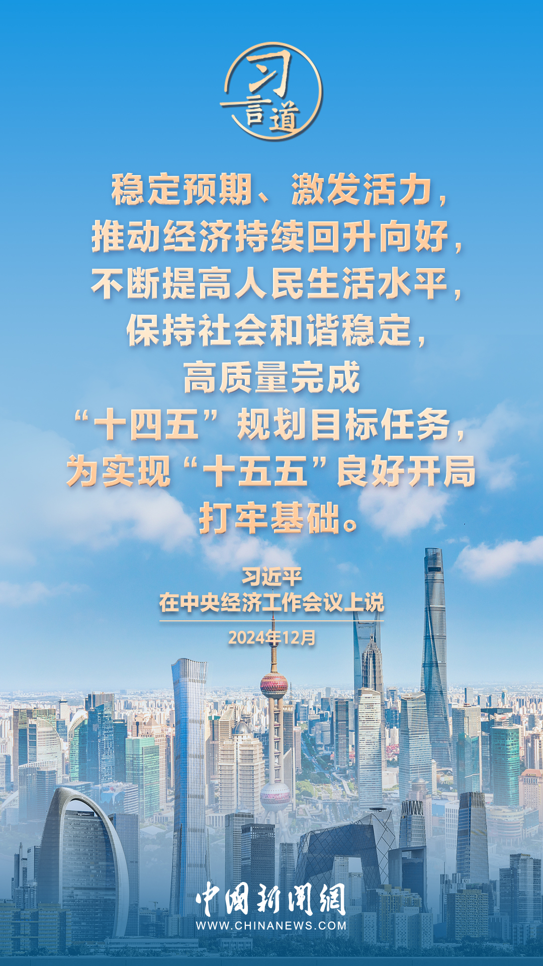 •   中央經(jīng)濟工作會議12月11日至12日在北京舉行。15日,中央經(jīng)濟工作會議側(cè)記公布,披露了習(xí)近平總書記在會議上的部分重要講話。他指出——